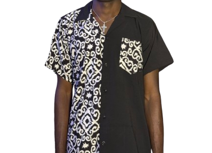 Black & white sleek black shirt with the bold monochrome pattern that stands out effortlessly.