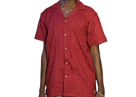 Wine Textured Shirt, Deep wine shade with a ribbed, tactile fabric that blends comfort and sophistication.